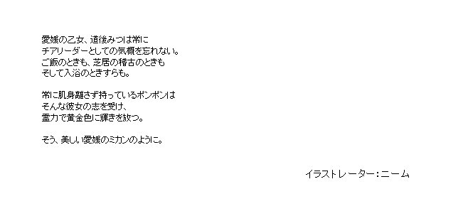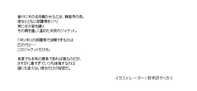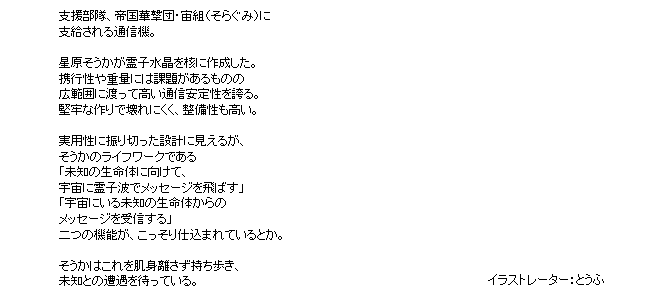 星三護符ー追加 アンジェリカの髪飾り宙組特製通信機ゆすらのバイクみつのポンポンのあのジャケットみうめのパンダしゃなの手裏剣 「アンジェリカの髪飾り」 どこかをクリックするとウィンドウが閉じます 「サムライアンジュの九州武者修行」イベントドロップアップ護符 「宙組特製通信機」 どこかをクリックするとウィンドウが閉じます 「宙の乙女と星の海」イベントドロップアップ護符 「ゆすらのバイク」 どこかをクリックするとウィンドウが閉じます 「四国乙女 期間限定ピックアップ調査」追加護符 「みつのポンポン」 どこかをクリックするとウィンドウが閉じます 「四国乙女 期間限定ピックアップ調査」追加護符 「のあのジャケット」 どこかをクリックするとウィンドウが閉じます 「四国乙女 期間限定ピックアップ調査」追加護符 「みうめのパンダ」 どこかをクリックするとウィンドウが閉じます 「那智みうめピックアップ調査」追加護符 「しゃなの手裏剣」 どこかをクリックするとウィンドウが閉じます 「那智みうめピックアップ調査」追加護符